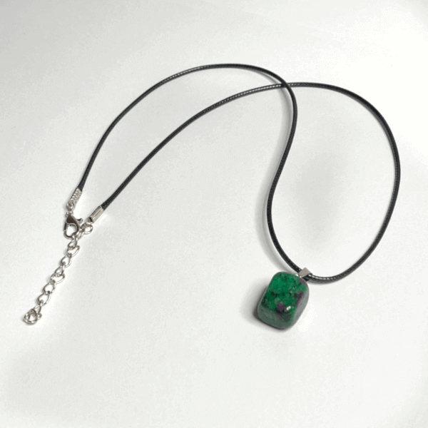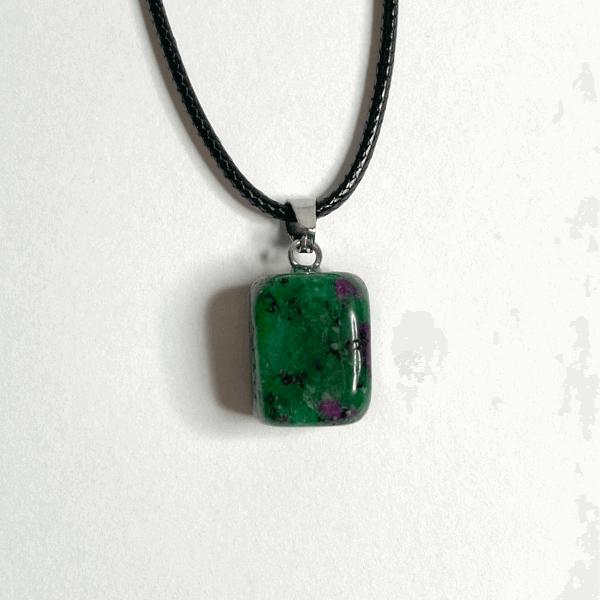 O Colar Anyolite alia simplicidade e intensidade energética numa peça que transmite força, equilíbrio e autenticidade. A pedra anyolite resulta da combinação de rubi e zoisita, juntando a vibração intensa do rubi — ligada à paixão, coragem e ação — com a estabilidade emocional e espiritual da zoisita.