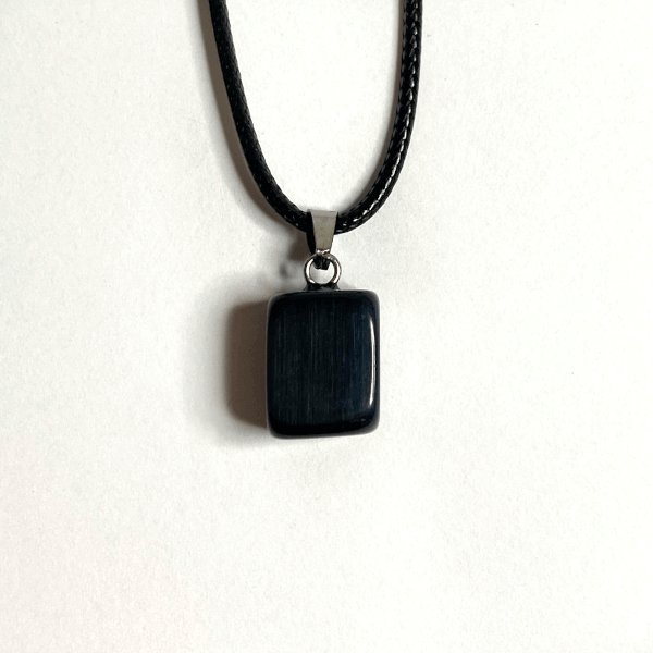 O pingente de ónix natural apresenta um acabamento polido, de toque suave e brilho profundo. O fio em couro com fecho ajustável garante conforto e adaptabilidade, podendo ser usado no dia a dia ou em momentos que exigem mais foco e proteção.