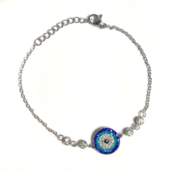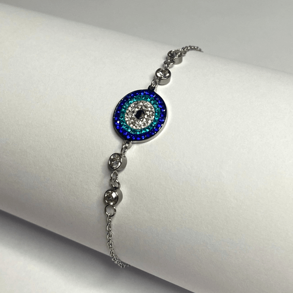 Função: Esta pulseira atua como um poderoso amuleto de proteção espiritual. O símbolo do olho grego é conhecido por repelir o mau-olhado, bloqueando energias negativas e promovendo um campo de equilíbrio e bem-estar à sua volta.